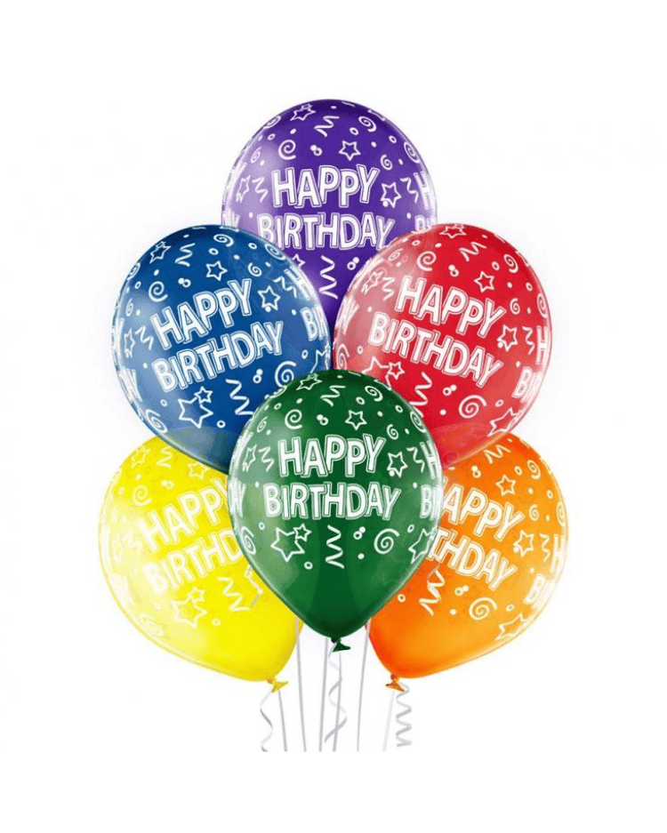 Barevné balonky s potiskem Happy Birthday – 6ks