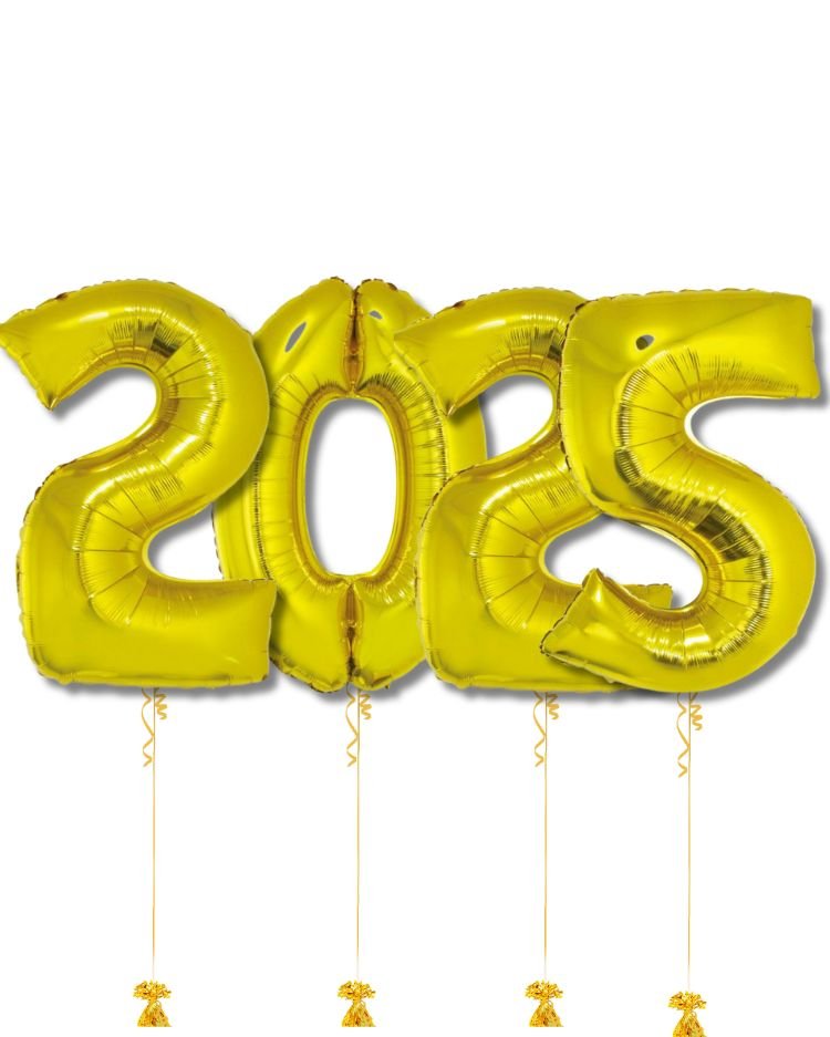 Bez Helia – Balonkový set Silvestr 2025, zlatý 76 cm, 4 ks