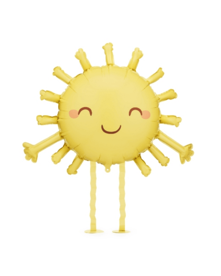 Veselý balónek ve tvaru sluníčka, který udělá radost dětem i dospělým. Má usměvavý obličej a navíc dlouhé nožičky. Hodí se na narozeninové oslavy, letní akce nebo jen tak jako milý doplněk do pokoje. Po naplnění héliem poletuje nad zemí a vypadá jako by chodil. Velikost balónku po nafouknutí je cca 77 x 62 cm + nožičky.