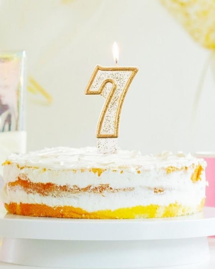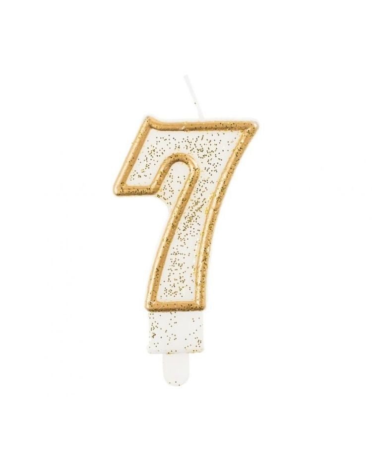 Přineste na narozeninový dort okouzlující třpyt s naší svíčkou ve tvaru číslice „7“ obklopenou třpytivým zlatým okrajem. Výška 7,5 cm a elegantní design s jemnými zlatými třpytkami dodávají této svíčce luxusní vzhled.