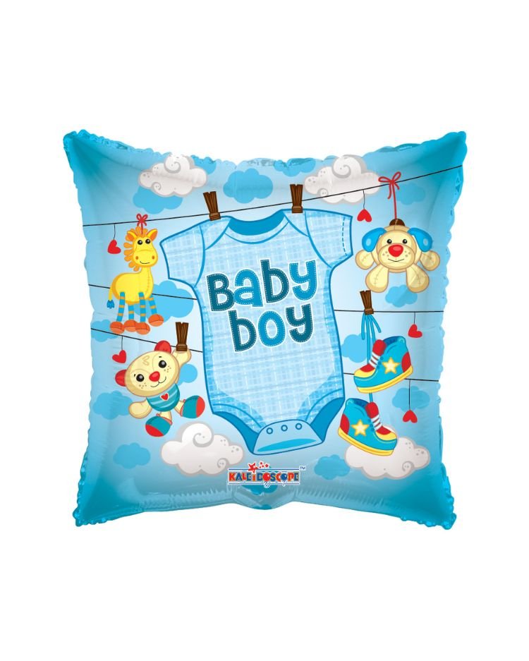 Tento produkt obsahuje nenafouknutý fóliový balónek ve tvaru čtverce o velikosti 46 cm s motivem modrého bodyčka a nápisem Baby Boy. Balónek je ozdoben veselými obrázky hraček, obláčků a srdíček, takže je ideální volbou pro oslavu narození chlapečka, baby shower nebo vítání miminka z porodnice. Výborně se hodí jako dekorace nebo jako součást dárkového balení.