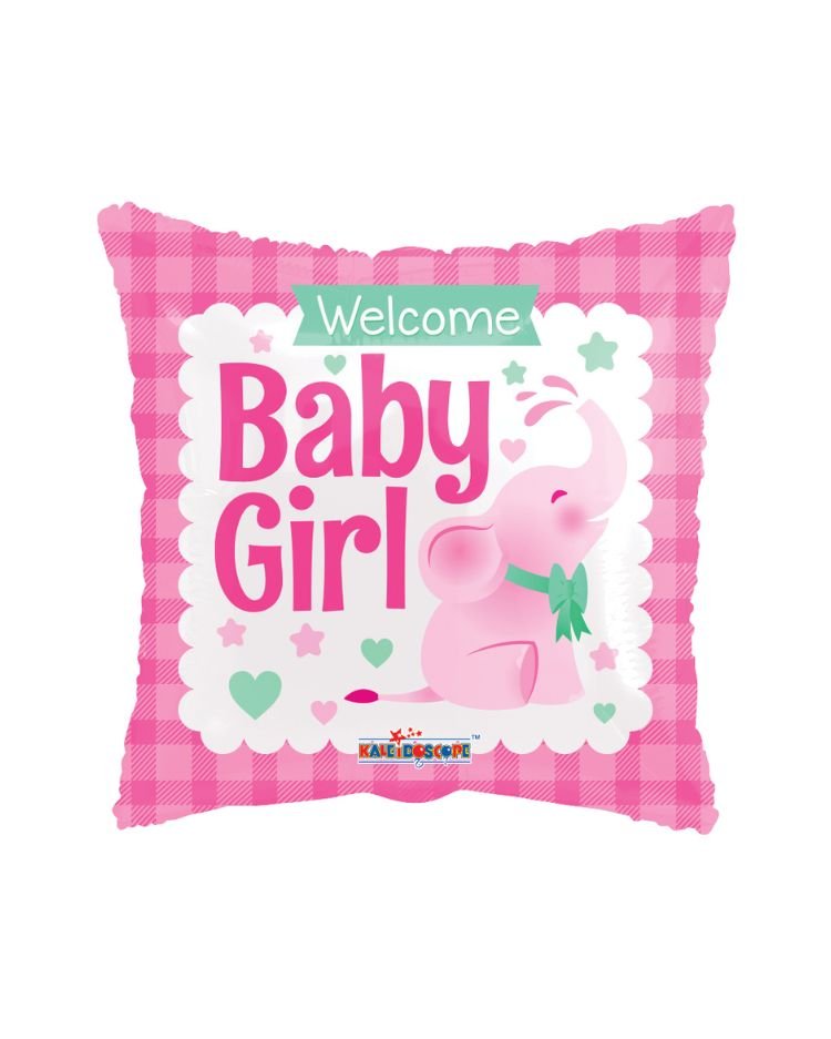 Tento produkt obsahuje nenafouknutý fóliový balónek ve tvaru čtverce o velikosti 46 cm s nápisem Welcome Baby Girl a roztomilým růžovým sloníkem. Jemný růžovobílý design s dekorativními srdíčky je ideální volbou pro oslavu narození holčičky, baby shower nebo jako výzdoba při návratu z porodnice. Balónek se krásně hodí i jako doplněk k dárku pro novopečené rodiče.