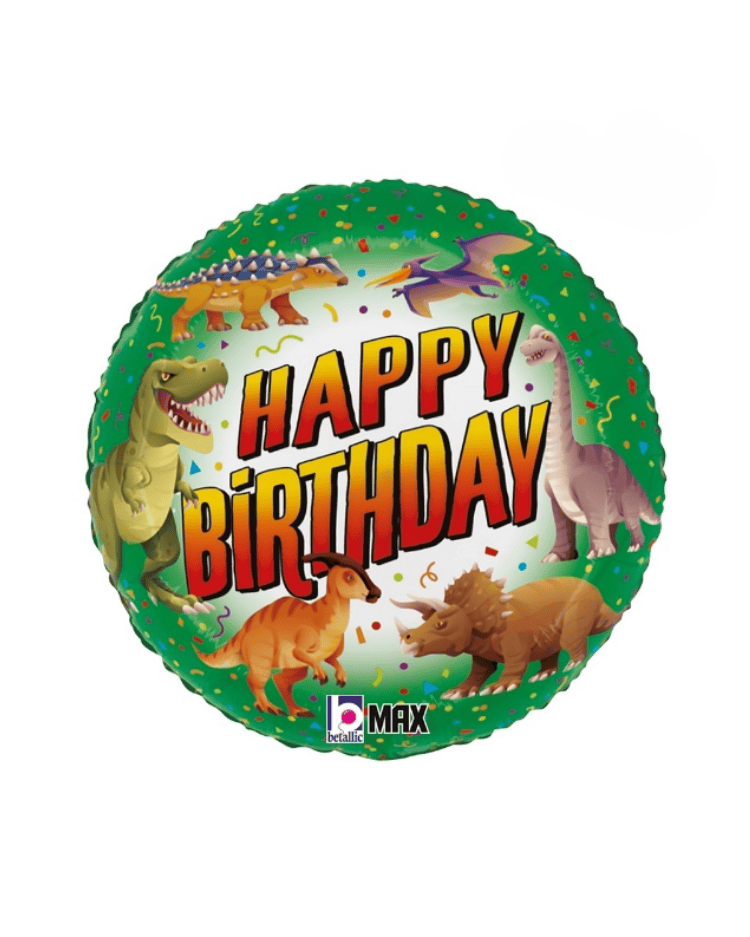 Fóliový balónek v dinosauřím motivu, ve velikosti 45 x 45 cm. Balónek s nápisem Happy Birthday, udělá radost nejen jak dárek, ale i jako dekorace narozeninové oslavy.