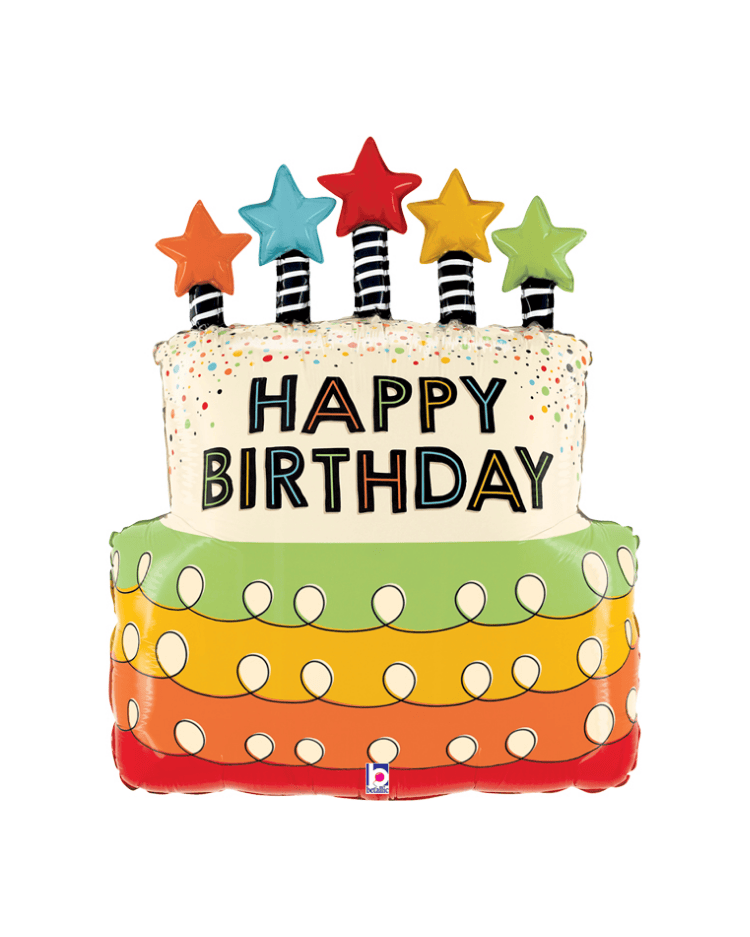 Tento produkt obsahuje nenafouknutý Supershape balónek ve tvaru dortu svíčky s hvězdami 66 cm, velikost 66 cm, vytvořený společností Grabo, jedním z předních italských výrobců balónků.