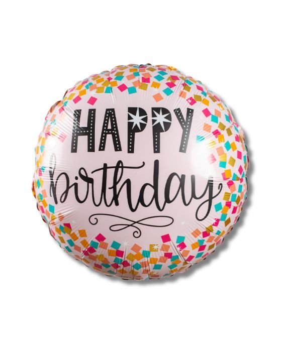 Tento veselý fóliový balónek s růžovým pozadím a nápisem „Happy Birthday“ je obklopen barevnými konfety, což z něj dělá ideální dekoraci pro oslavy narozenin. Svěží barvy a hravý design přinášejí radostnou atmosféru na každou party.