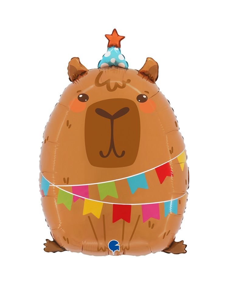 Tento produkt obsahuje nenafouknutý fóliový balónek s originálním motivem Party Kapybary o velikosti 58 cm. Roztomilá kapybara s narozeninovou čepicí a barevnou girlandou se stane veselou ozdobou každé oslavy. Perfektní doplněk na dětské narozeniny, zvířecí párty nebo jako vtipná dekorace k dárku. Její přátelský výraz a hravý styl vykouzlí úsměv každému.