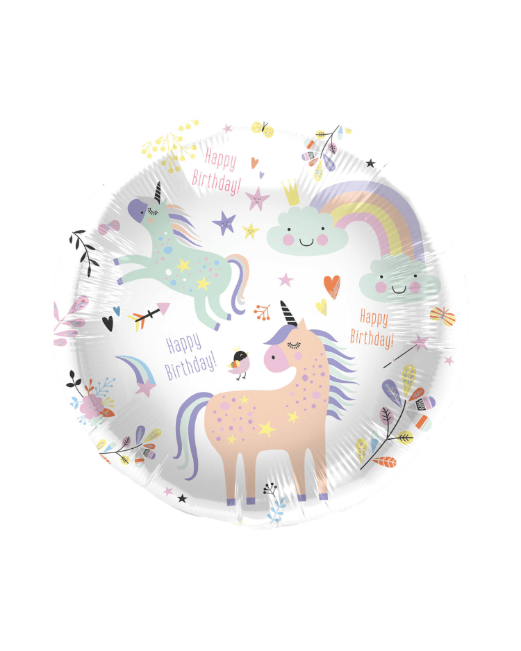 Foliový balonek – pasteloví jednorožci s duhou 45 cm. Tento balónek je perfektní dekorační doplněk na oslavu narozenin nebo jako výzdoba party. Hodí se také jako malý dárek. Balonek lze nafouknout klasicky vzduchem ale i heliem.