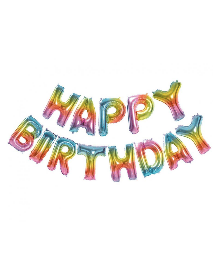Foliový nápis HAPPY BIRTHDAY duhový 340 x 35 cm