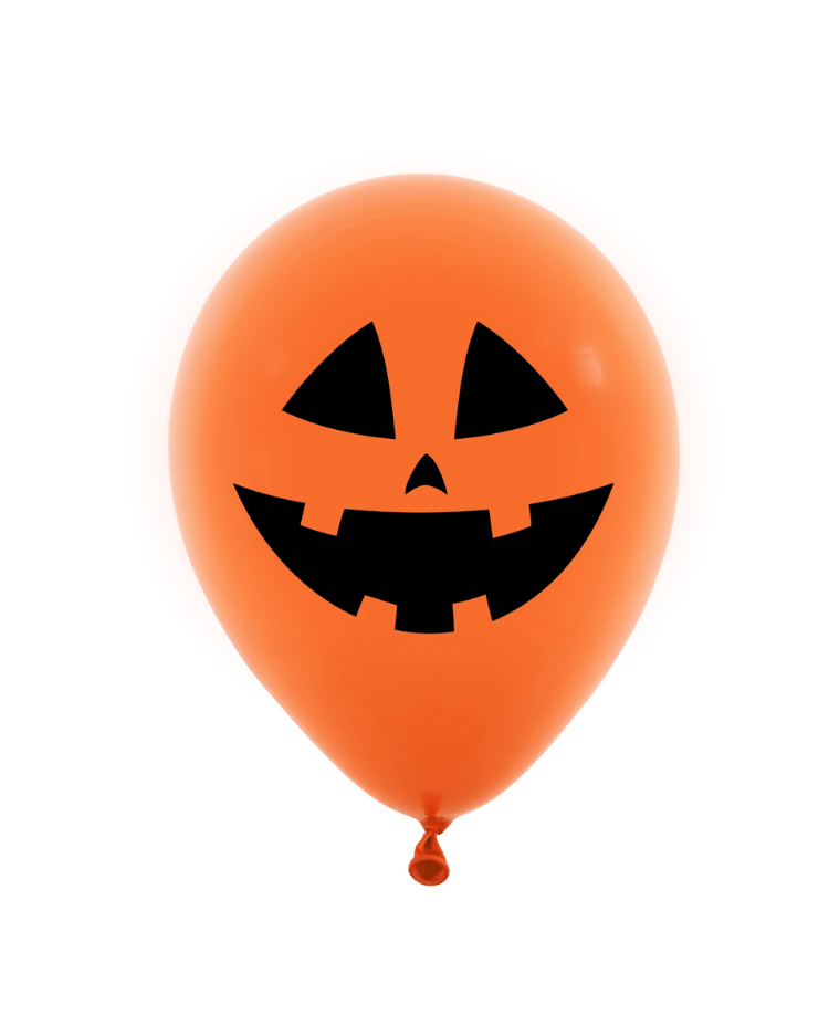 Pastelový balonek v oranžové barvě s potiskem obličeje vyřezané dýně. Balonek se hodí na Halloween nebo jinou strašidelnou party pro dospělé i pro děti. Balónek lze plnit vzduchem i héliem a je velký 30 cm.
