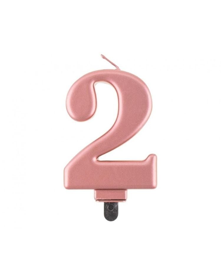 Přineste elegantní punc na narozeninový dort s touto nádhernou svíčkou číslice „2“ v metalickém odstínu růžového zlata. S výškou 8 cm je tato svíčka ideální pro vytvoření sofistikovaného vzhledu bez přehnané dominance.