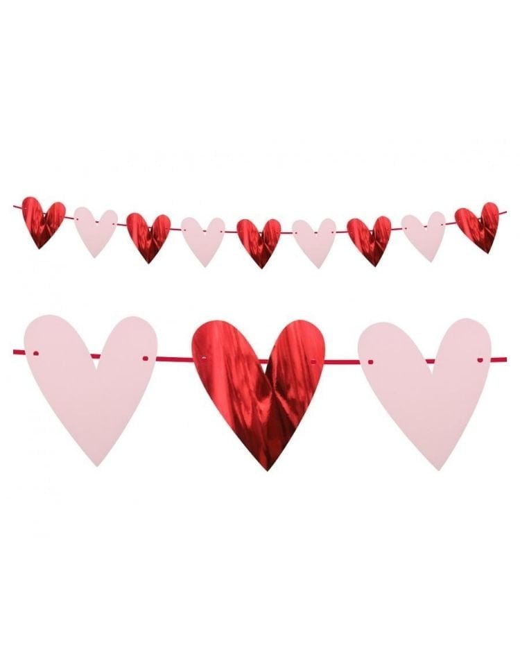 Každé srdce je pečlivě vyřezáno a spojeno do řetězu, který dodává dekoraci plynulý a harmonický vzhled. Červená srdce s metalickým efektem krásně kontrastují s pastelově růžovými, vytvářejíce tak vizuální zážitek plný tepla a lásky.