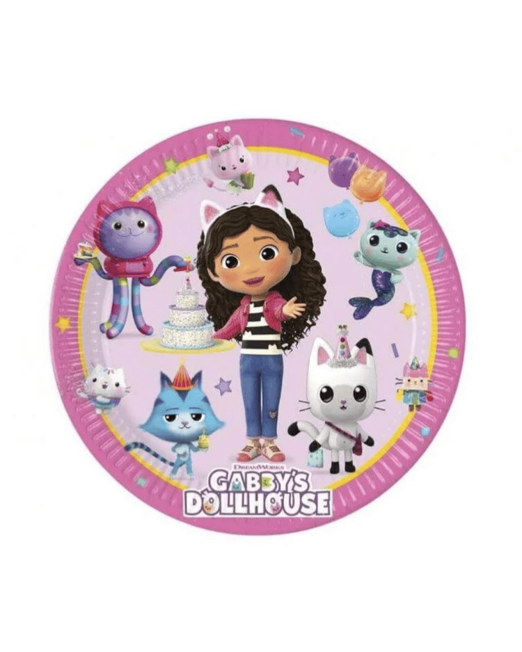 Papírové talířky s motivem seriálu Gábinin kouzelný domek, v originále Gabby’s Dollhouse. Určitě je využijete na tematické narozeninové oslavě, jak na zákusky a dobroty, tak na dekoraci stolu pro oslavu.