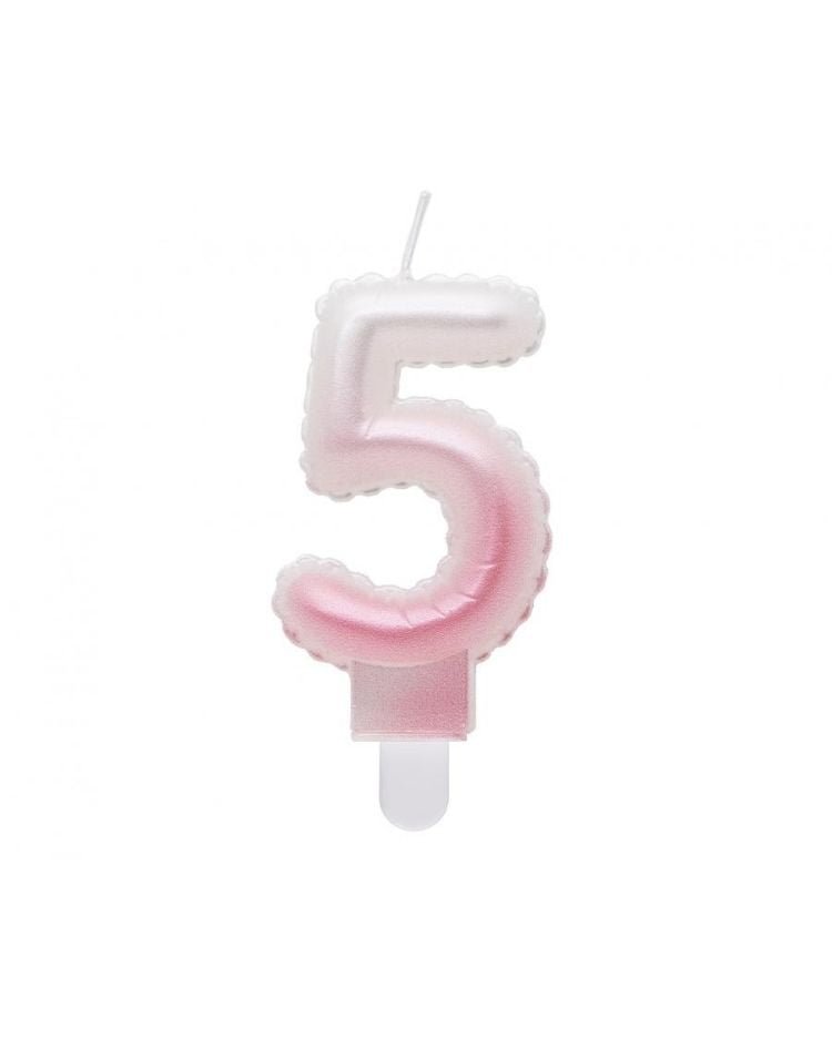 Ponořte narozeninovou oslavu do nádhery perleťové bílo-růžové s touto ombre svíčkou číslice „5“. S výškou 7 cm je tato svíčka ztělesněním elegance, vhodná pro jemné zdůraznění významného okamžiku.