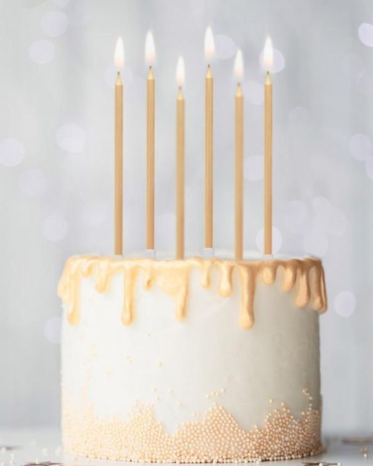 Elegantní světle zlaté svíčky v metalickém provedení přidají nádech luxusu každé oslavě. Ideální pro narozeninové dorty nebo slavnostní dekorace.