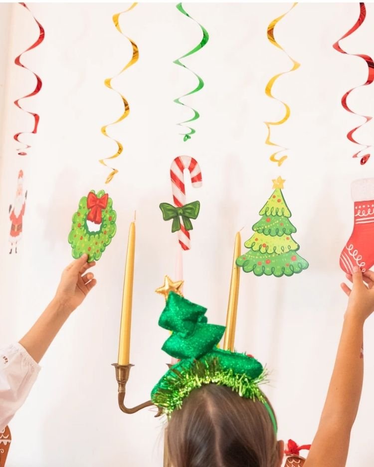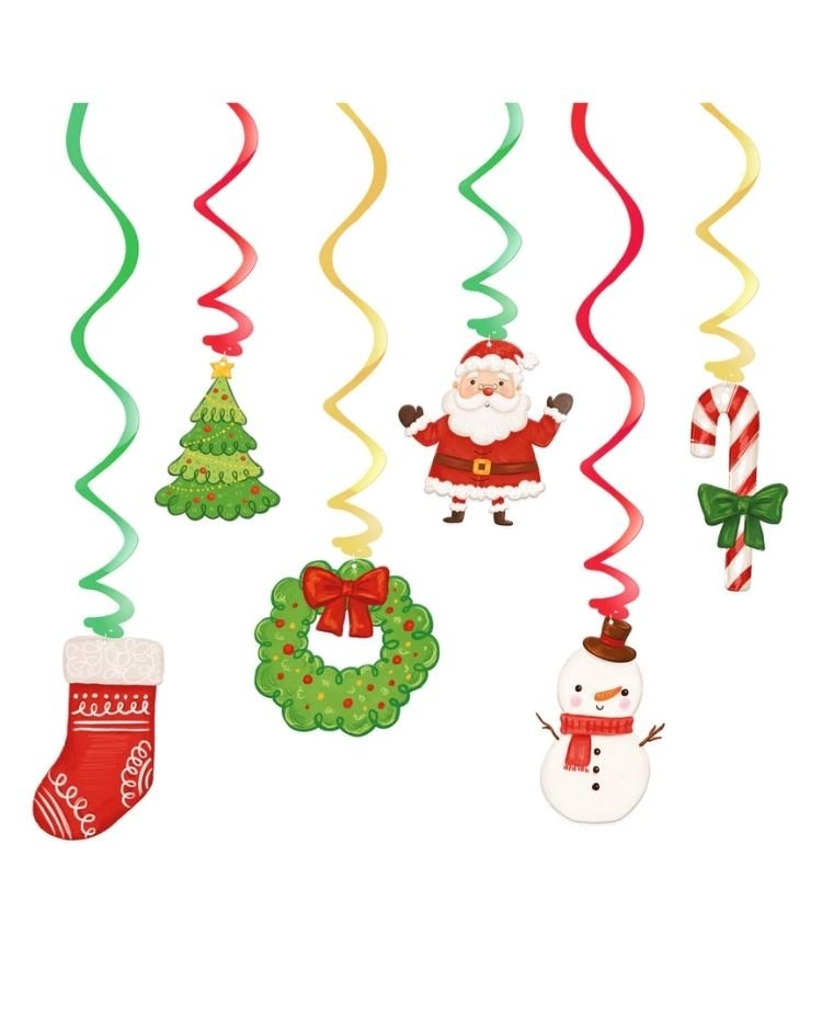 Sada 6 závěsných vánočních dekorací přinese kouzlo Vánoc do vašeho domova. Každá dekorace je ozdobena veselými vánočními motivy, jako je Santa Claus, vánoční stromeček, sněhulák, věnec, punčocha a cukrová hůlka. Díky barevným spirálám v kombinaci zelené, červené a zlaté barvy oživí každý interiér.